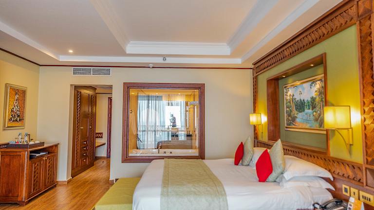 Die Zimmer sind mit Klimaanlage, einem Sitzbereich, einem Flachbild-TV mit Satellitenkanälen, einem Safe und einem eigenen Badezimmer mit Dusche, kostenlosen Pflegeprodukten und einem Haartrockner ausgestattet. Jedes Zimmer verfügt zudem über einen Wasserkocher; einige Zimmer beinhalten eine Küchenzeile mit Mikrowelle. Bettwäsche und Handtücher sind ebenfalls vorhanden.