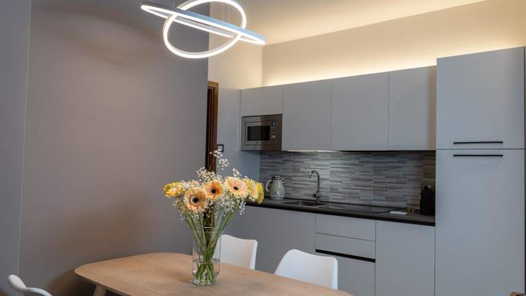 Die Unterkunft verfügt über eine voll ausgestattete Küche mit einem Essbereich, in der die Gäste ihre Mahlzeiten selbst zubereiten können. Als Küchenutensilien stehen ein Kühlschrank, eine Mikrowelle, eine Herdplatte sowie eine Kaffeemaschine und ein Wasserkocher zur Verfügung.