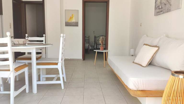 Das klimatisierte Gompos Apartment verfügt über 2 Schlafzimmer, ein geräumiges Wohnzimmer, eine voll ausgestattete Küche mit Kühlschrank und Kaffeemaschine sowie ein Badezimmer mit Dusche und Haartrockner. Die Unterkunft ist komfortabel eingerichtet und bietet Ihnen alles, was Sie für einen angenehmen Aufenthalt benötigen. Handtücher und Bettwäsche werden gestellt, um Ihren Komfort zu gewährleisten. Von der Terrasse oder dem Balkon aus können Sie den atemberaubenden Blick auf das Meer und die Berge genießen.