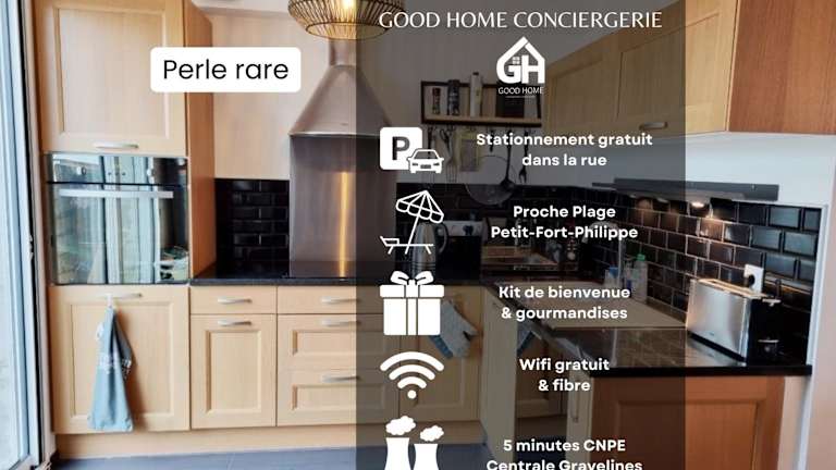 Das GOOD HOME Chez Lulu, plage & centrale liegt in Gravelines, nur einen kurzen Spaziergang vom Plage de Gravelines entfernt. Dieser Strand ist ideal für Sonnenanbeter und Wassersportliebhaber. In der Umgebung finden Sie auch viele Restaurants und Geschäfte. Die Stadt Gravelines bietet eine malerische Altstadt mit historischen Gebäuden und charmanten Gassen. In der Nähe befinden sich auch der Bahnhof Dunkerque und der Bahnhof Calais, die beide bequem zu erreichen sind.