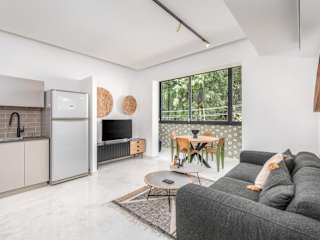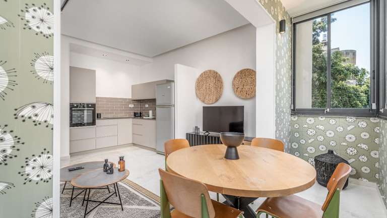 Das Apartment verfügt über eine voll ausgestattete Küche, so dass Sie Ihre eigenen Mahlzeiten zubereiten können. Alternativ können Sie auch die zahlreichen Restaurants und Cafés in der Umgebung erkunden und die vielfältige Küche von Tel Aviv genießen.
