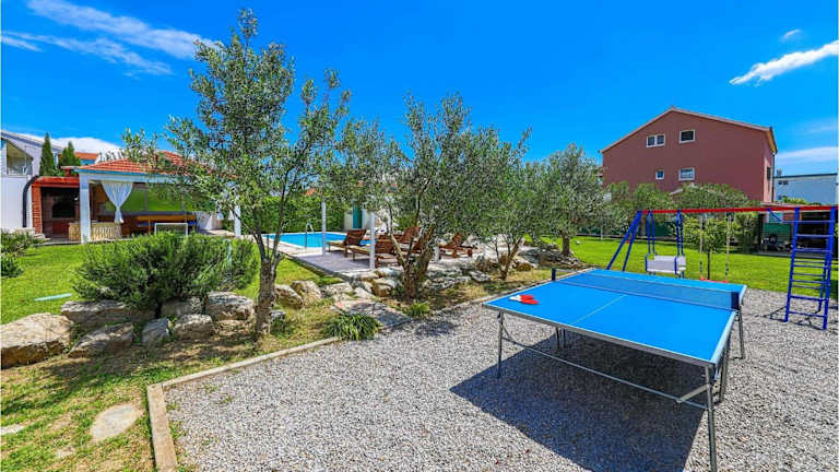 Für Freizeitaktivitäten stehen Tischtennis und Badminton zur Verfügung. Darüber hinaus gibt es einen Garten mit Gartenmöbeln und Outdoorspielgeräten für Kinder, die für Familien geeignet sind.