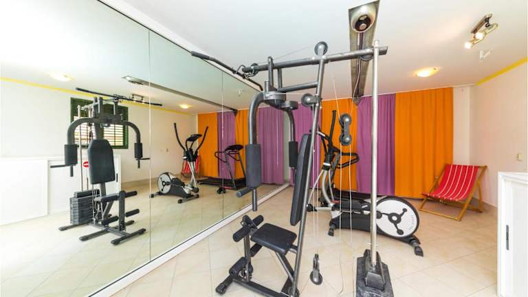Das Ferienhaus bietet Platz in 7 Schlafzimmern und verfügt über 4 Badezimmer mit Duschen. Es umfasst ein komfortables Wohnzimmer und eine voll ausgestattete Küche, die mit einem Kühlschrank und einer Kaffeemaschine ausgestattet ist. Die Klimaanlage sorgt für einen angenehmen Aufenthalt.