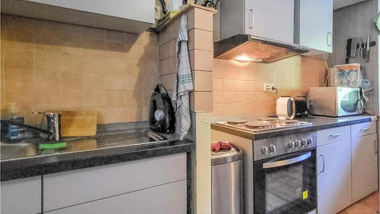 Das Ferienhaus umfasst ein Wohnzimmer mit Kabel-TV und eine voll ausgestattete Küche, die einen Kühlschrank beinhaltet.