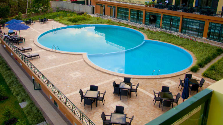 Das Gorillas Golf Hotel in Kigali bietet eine komfortable Unterkunft mit einem Außenpool, Fitnesscenter und kostenfreiem WLAN. Die Zimmer sind modern ausgestattet und bieten einen schönen Blick auf den Pool. Genießen Sie das kontinentale Frühstück und probieren Sie die afrikanische und internationale Küche im Hotelrestaurant. Das Hotel liegt in der Nähe von Sehenswürdigkeiten wie dem Kongresszentrum Kigali und dem Kigali Centenary Park.