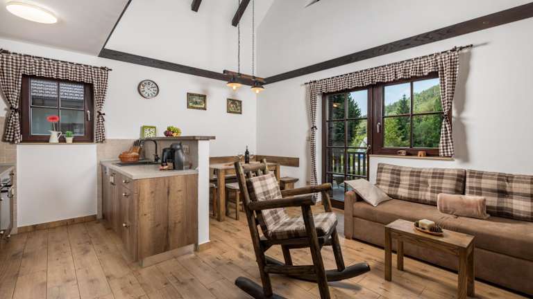 Das Chalet umfasst zwei Schlafzimmer, ein Wohnzimmer und eine gut ausgestattete Küche. Zur weiteren Ausstattung gehören ein Kabel-Flachbild-TV sowie ein Badezimmer mit Dusche und Whirlpool. Eine Terrasse mit Bergblick ist ebenfalls verfügbar, ebenso wie Handtücher und Bettwäsche.