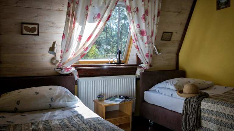 Das Gościniec Figlówka ist ein einzigartiges Hotel, das abgeschieden inmitten einer malerischen Waldlichtung liegt. Hier haben Sie die Möglichkeit, in Kontakt mit Haustieren und Wildtieren zu kommen und die Natur in vollen Zügen zu genießen. Die Zimmer sind gemütlich mit Holzelementen gestaltet und bieten alles, was Sie für einen angenehmen Aufenthalt benötigen. Das Klubzimmer lädt zum Entspannen am Kamin ein und bietet zudem kostenfreies WLAN sowie eine Auswahl an Büchern, Musikinstrumenten und Spielen. Die Umgebung kann mit Fahrrädern erkundet werden und es gibt auch verschiedene Freizeiteinrichtungen wie Darts, Tischfußball und Tischtennis. Die Gemeinschaftsküche steht Ihnen zur Verfügung und der nahegelegene See Orkusz bietet eine schöne Strand- und Angelmöglichkeit.