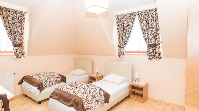 Das Gościniec Pięciu Stawów liegt am Stadtrand von Ustrzyki Dolne und bietet eine ruhige und idyllische Lage. Die Umgebung ist geprägt von einer beeindruckenden Landschaft mit Wiesen, Wäldern und Teichen. Das Stadtzentrum von Ustrzyki Dolne ist nur 3 km entfernt und sowohl der Bahnhof als auch der Busbahnhof sind in einer Entfernung von 2,8 km erreichbar.