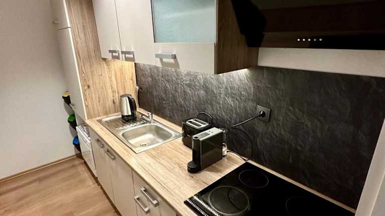 Die Ferienwohnung bietet ein Schlafzimmer, ein Wohnzimmer sowie eine voll ausgestattete Küche mit Kühlschrank und Kaffeemaschine. Es gibt zwei Badezimmer, die mit Dusche und Haartrockner ausgestattet sind. Handtücher und Bettwäsche werden bereitgestellt.