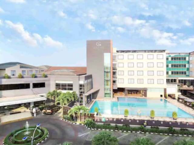 Das Hotel Grage Cirebon in Cirebon bietet seinen Gästen einen angenehmen Aufenthalt mit freundlichem Personal und komfortablen Zimmern. Es verfügt über Innen- und Außenpools, ein Fitnessstudio, eine Sauna und ein Spa, in dem Massagen angeboten werden. Das Hotelrestaurant bietet eine abwechslungsreiche Auswahl an Speisen für Mittag- und Abendessen. WLAN ist in den öffentlichen Bereichen kostenlos verfügbar. Das Hotel bietet außerdem Tagungseinrichtungen und kostenpflichtige Parkplätze.
