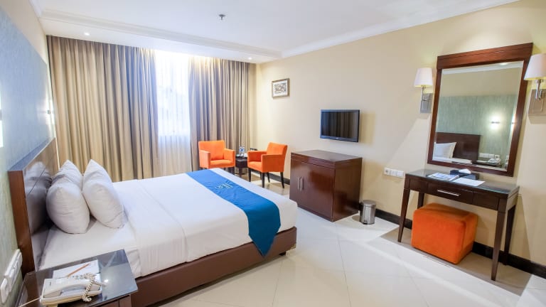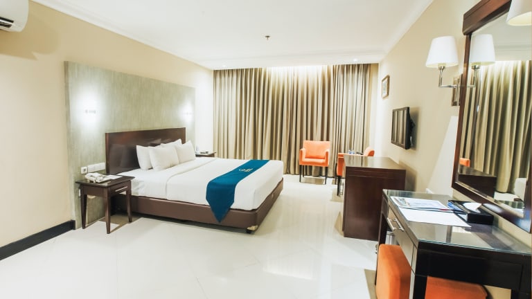 Die Zimmer im Hotel Grage Cirebon sind komfortabel eingerichtet und verfügen über eine Klimaanlage, eine Minibar und einen Schreibtisch. Eine Tee- und Kaffeemaschine steht ebenfalls zur Verfügung. Die Zimmer sind mit einem Telefon, einem TV-Gerät mit Kabelempfang und kostenlosem WLAN ausgestattet. Die Badezimmer verfügen über eine Dusche oder eine Badewanne und kostenlose Kosmetikartikel.