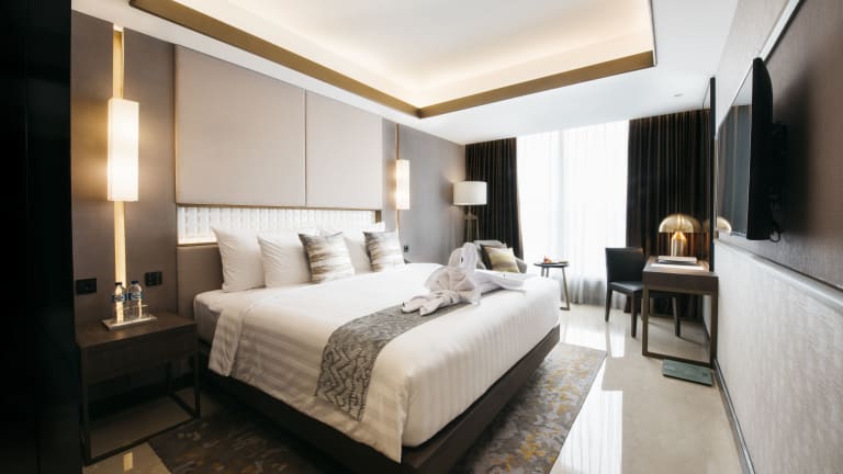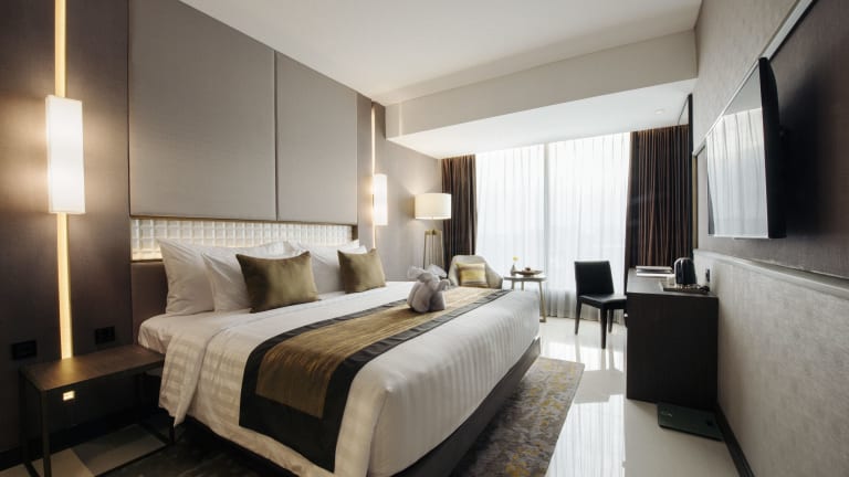 Die Zimmer im GRAMM HOTEL by Ambarrukmo - Formerly Grand Ambarrukmo Yogyakarta sind mit einem Flachbild-TV, einem persönlichen Safe, einem Wasserkocher und einer Klimaanlage ausgestattet. Einige Einheiten bieten Stadtblick. Jedes Zimmer verfügt über ein eigenes Bad mit einer Dusche, einem Haartrockner und kostenlosen Toilettenartikeln.