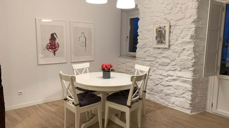 Die geräumige Wohnung verfügt über 2 Schlafzimmer, ein Wohnzimmer und eine voll ausgestattete Küche. Sie bietet Platz für bis zu 4 Personen und ist mit allen Annehmlichkeiten ausgestattet, die Sie für einen komfortablen Aufenthalt benötigen. Ein Balkon und eine Terrasse bieten einen atemberaubenden Blick auf die Stadt und das Meer. Kostenloses WLAN ist ebenfalls verfügbar.