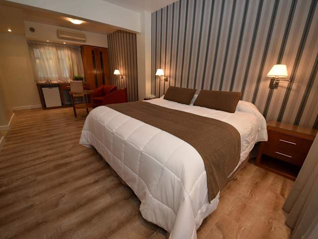 Das Gran Hotel Skorpios bietet insgesamt 72 Zimmer auf 9 Etagen. Die Zimmer sind gemütlich eingerichtet und verfügen über Klimaanlage, Heizung, Minibar, Plasma-TV und kostenloses WLAN. Einige Zimmer bieten auch eine Whirlpool-Badewanne für zusätzlichen Komfort. Die Zimmer sind komplett mit Teppichböden ausgestattet und bieten eine angenehme Atmosphäre für einen erholsamen Aufenthalt.