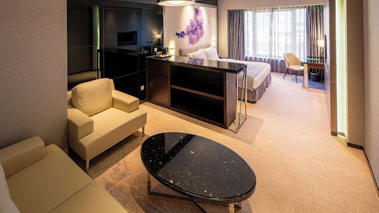 Die 300 Zimmer des Hotels erstrecken sich über 23 Etagen und sind über einen Aufzug erreichbar. Jedes Zimmer ist mit modernen Annehmlichkeiten ausgestattet und bietet Ihnen einen komfortablen Rückzugsort während Ihres Aufenthalts. Zur Ausstattung gehören unter anderem eine Klimaanlage, ein Safe, eine Minibar, ein Schreibtisch und ein Fernseher mit Kabelempfang. WLAN steht Ihnen im gesamten Hotel kostenfrei zur Verfügung.