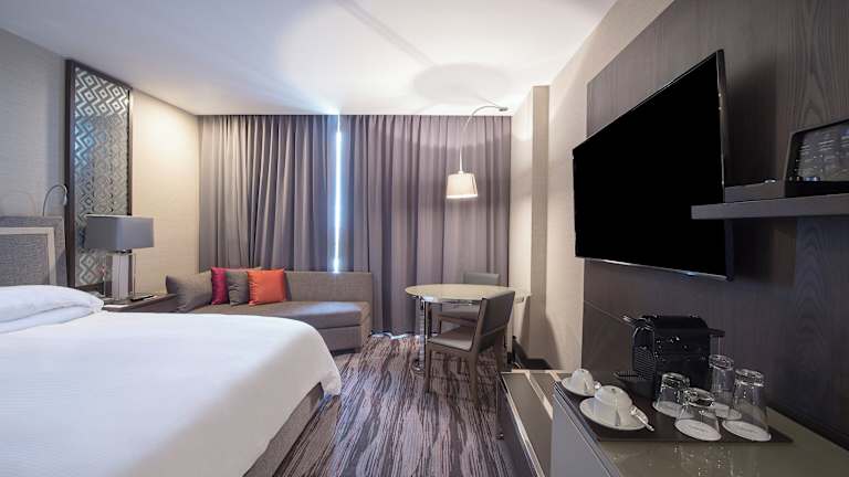 Das Hotel verfügt über 168 Zimmer, die alle mit modernen Annehmlichkeiten ausgestattet sind, um den Gästen einen komfortablen Aufenthalt zu bieten. Die Zimmer verfügen über einen Flachbild-TV, ein eigenes Bad mit Dusche, kostenlosen Pflegeprodukten und einem Haartrockner. Zur Ausstattung gehören auch eine Klimaanlage, eine Minibar, ein Schreibtisch und kostenfreies WLAN.