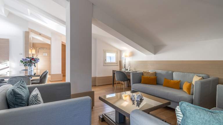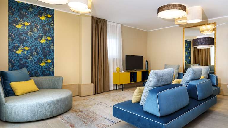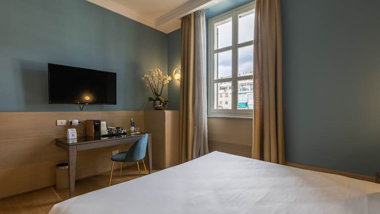 Die klimatisierten Zimmer verfügen über modernes Design und sind mit kostenlosem WLAN, Flachbild-TV, eigenem Bad mit Bademantel und Hausschuhen ausgestattet. Ausgewählte Zimmer bieten Meerblick. Es stehen verschiedene Zimmertypen zur Verfügung, darunter Doppelzimmer und Suiten, die zwischen 18 und 30 m² groß sind und über eine Minibar sowie einen Safe verfügen.