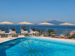 Das Hotel befindet sich ganz in der Nähe des historischen Zentrums von Sorrent. Die Innenausstattung ist mit hochwertigen Möblen – von ortsansässigen Handwerkern mit feinen Einlegearbeiten versehen – mit Marmorböden und bequemen Sofas außerordentlich einladend und komfortabel. ·Lage im Zentrum von Sorrent, ganz in der Nähe der Piazza Tasso und des Bahnhofs. ·Ruhige Panoramalage mit bezauberndem Blick auf den Golf von Neapel und den Vesuv.
