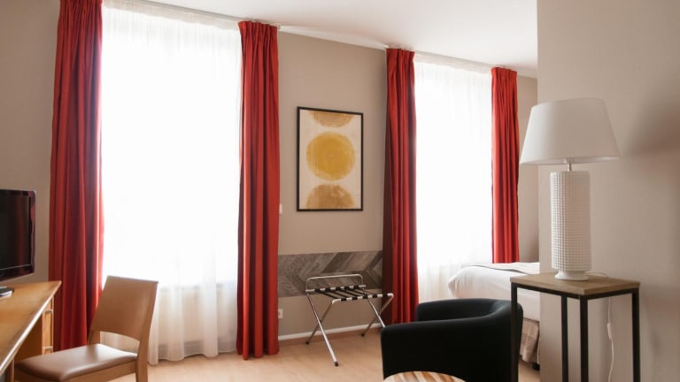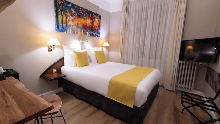 Die Zimmer im Grand Hôtel Du Tonneau d'Or sind individuell gestaltet und bieten eine angenehme Mischung aus neoklassischem Charme und modernem Komfort. Jedes Zimmer verfügt über ein eigenes Badezimmer, in dem Sie sich nach einem ereignisreichen Tag entspannen können. Zur Ausstattung gehören auch Kabel-TV und WLAN, damit Sie auch während Ihres Aufenthalts mit der Welt in Verbindung bleiben können. Der Aufzug im Hotel erleichtert den Zugang zu den Zimmern, und die klimatisierten Zimmer in der 3. Etage sorgen auch an warmen Tagen für angenehme Temperaturen.