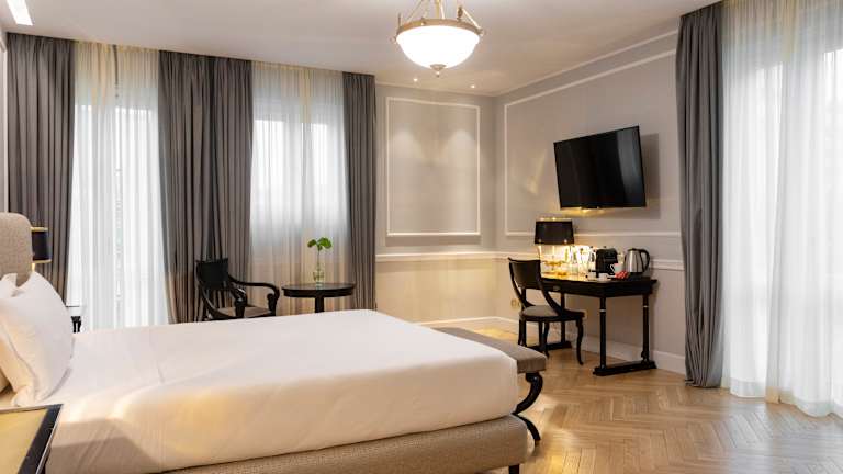 Das Grand Hotel Et Des Palmes bietet klassisch eingerichtete Zimmer mit traditionellem Mobiliar und edlen Stoffen. Die klimatisierten Zimmer verfügen über Annehmlichkeiten wie Sat-TV und eine Minibar. Die Zimmer bieten einen komfortablen Rückzugsort nach einem ereignisreichen Tag in Palermo.