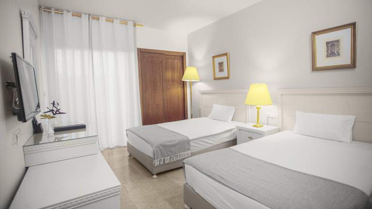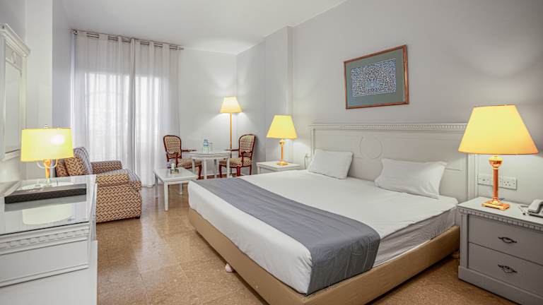 Die 84 Zimmer des Hotels sind geräumig und sauber, ausgestattet mit eigenem Bad, Klimaanlage und Heizung. Viele Zimmer verfügen über einen Balkon oder eine Terrasse mit Blick auf den Pool oder die Stadt. Zur Ausstattung gehören Doppel- oder Kingsize-Betten, ein Safe, eine Minibar, ein Kühlschrank, eine Tee-/Kaffeemaschine, ein TV-Gerät mit Satelliten-/Kabelempfang und kostenfreies WLAN. Rollstuhlgerechte Zimmer sind ebenfalls verfügbar.