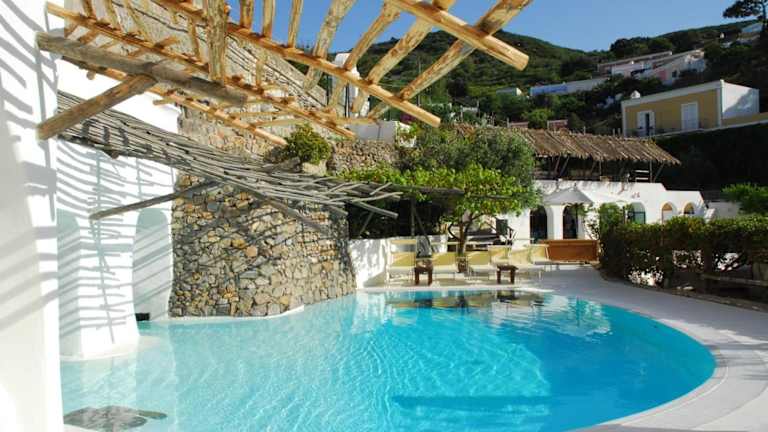 Das Grand Hotel Santa Domitilla auf der Insel Ponza bietet Urlaubern eine ideale Lage nur 80 Meter vom Strand Chiaia di Luna entfernt. Mit seinen 2 Meerwasser-Pools, einem Restaurant und einem Wellnesscenter ist es der perfekte Ort für Entspannung und Genuss. Das Hotel bietet zudem einen kostenlosen Shuttleservice zum nahegelegenen Hafen, von dem aus Fähren zu anderen Teilen Italiens abfahren.