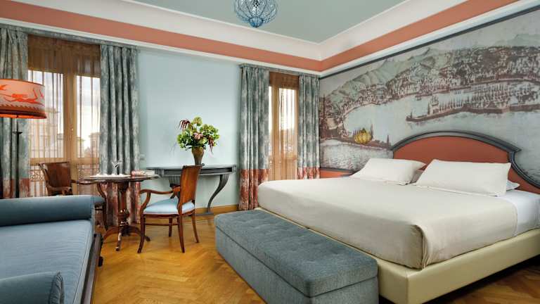 Das Grand Hotel Savoia verfügt über 117 Nichtraucherzimmer, die alle komfortabel eingerichtet sind und kostenfreies WLAN, eine kostenfreie Flasche Mineralwasser und einen LCD-TV bieten. Zur Ausstattung gehören auch eine Klimaanlage, eine Heizung, ein Safe, eine Minibar, eine Tee-/Kaffeemaschine und ein Balkon. Das Badezimmer ist mit einer Dusche oder einer Badewanne und einem Haartrockner ausgestattet. Es gibt auch rollstuhlgerechte Zimmer und Familienzimmer für Gäste mit Kindern.