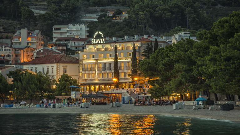 Nach einer ausführlichen Rekonstruktion, bietet das neue renovierte Grand Hotel Slavia seinen Gästen ein einzigartiges Erlebnis auf neuem Niveau. Gleichzeitig wurde die Tradition des aussergewöhnlichen Gebäudes erhalten, welches noch aus den 30. Jahren des letzten Jahrhunderts datiert. Das Grand Hotel Slavia befindet sich in Baška Voda, einem bekannten Urlaubsort an der gleichermassen bekannten Makarska Riviera, nur einige Schritte vom Meer sowie dem Strand entfernt, welcher die hohe Auszeichnung-blaue Flagge erhielt. Dieses lifestyle Hotel verfügt über 72 Zimmer und Suiten. Einige von Ihnen verfügen über einen atemberaubenden Meerblick. Von der einzigartigen Hotel Terasse mit seinem a'la carte Restaurant „Del Posto“ haben Sie eine wunderbare Aussicht auf das Zentrum von Baška Voda, während Sie die gesunde, mediterane Küche sowie eine große Auswahl der besten Weine genießen können. Das Fontane SPA Zentrum welches sich auf 800m2 erstreckt, wird Sie in eine Welt der Entspannung und Erholung entführen, während eine moderne Konferenz Halle sowie der große Festsaal der ideale Ort für geschäftliche Versammlungen aber auch für gesellschaftliche Veranstaltungen ist.