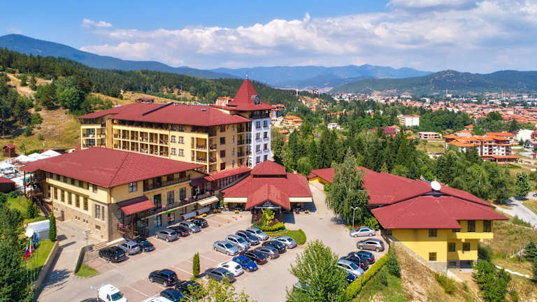 Das Hotel befindet sich auf einem malerischen Hügel in der Region Chepino in Welingrad. Es bietet einen beeindruckenden Blick auf die Stadt und den umliegenden Kiefernwald.