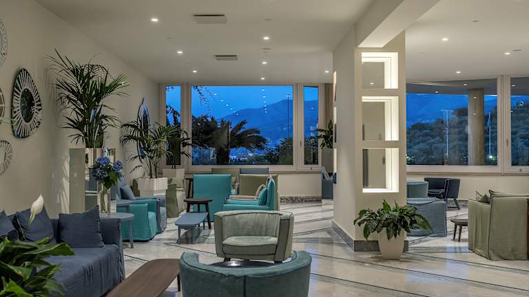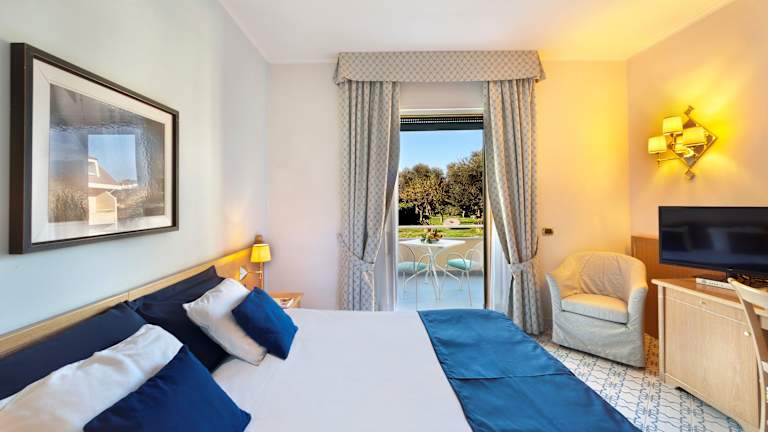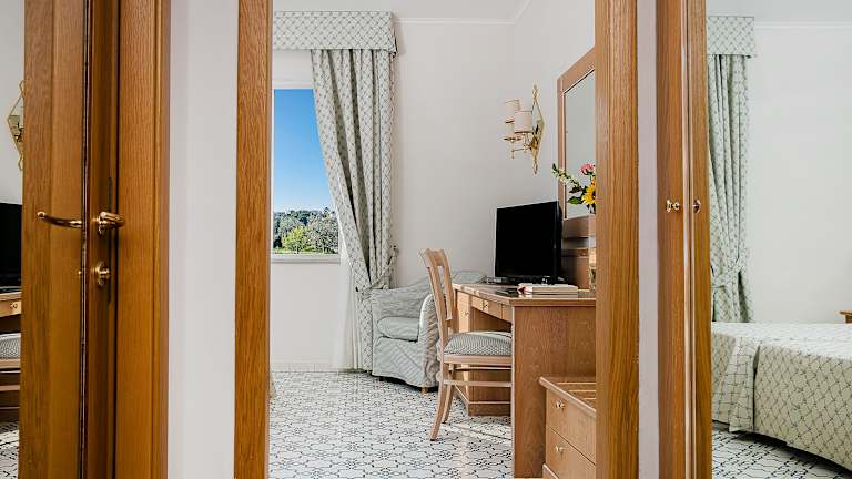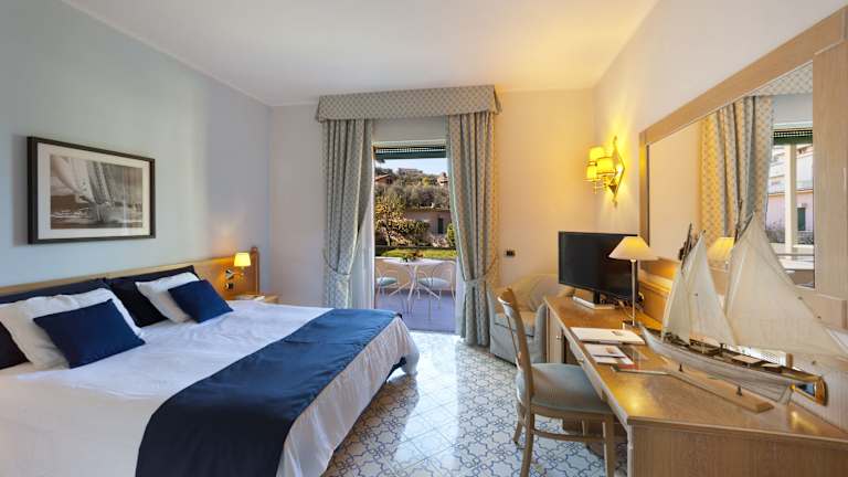 Das Hotel verfügt über 250 Zimmer auf 4 Etagen, die mit einem Aufzug erreichbar sind. Die Zimmer sind hell und geräumig, mit Fliesenböden und klassischen Möbeln eingerichtet. Jedes Zimmer ist klimatisiert und verfügt über einen TV, eine Minibar und ein eigenes Bad mit Pflegeprodukten. Einige Zimmer bieten auch einen Balkon oder eine Terrasse mit Meerblick.