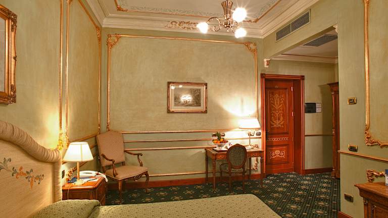 Das Grand Hotel Wagner bietet eine charmante Atmosphäre im Stil der Alten Welt und ist in einem sorgfältig renovierten Gebäude aus dem frühen 20. Jahrhundert untergebracht. Es verfügt über 61 Zimmer, ein Restaurant, eine Bar und verschiedene Konferenzräume. Das Interieur ist beeindruckend mit antikem Mobiliar, Kronleuchtern, seltenem Marmor und wertvollen Teppichen, das auch in dem berühmten Film 'Der Leopard' Verwendung fand. Zudem stehen den Gästen zahlreiche Serviceleistungen wie Zimmerservice, Wäscheservice und eine 24-Stunden-Rezeption zur Verfügung.