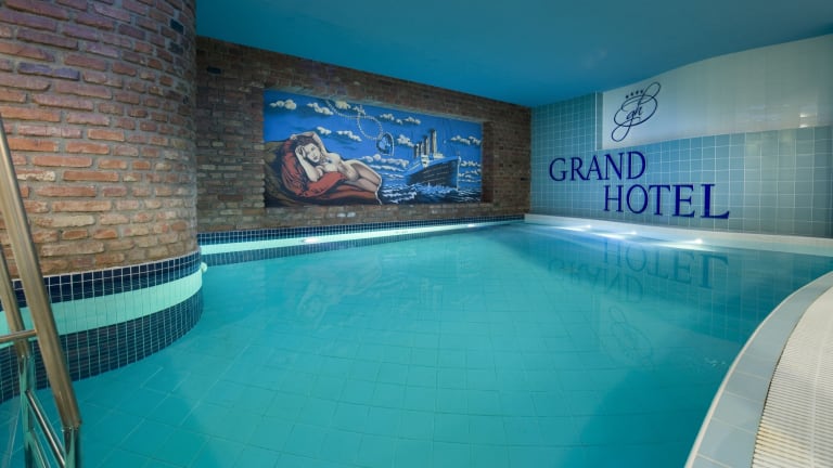 Im Grand Hotel können Sie sich im Innenpool entspannen und erfrischen. Die Umgebung bietet auch viele Möglichkeiten für Outdoor-Aktivitäten wie Wandern. Entdecken Sie die Schönheit der Natur und genießen Sie die frische Luft.