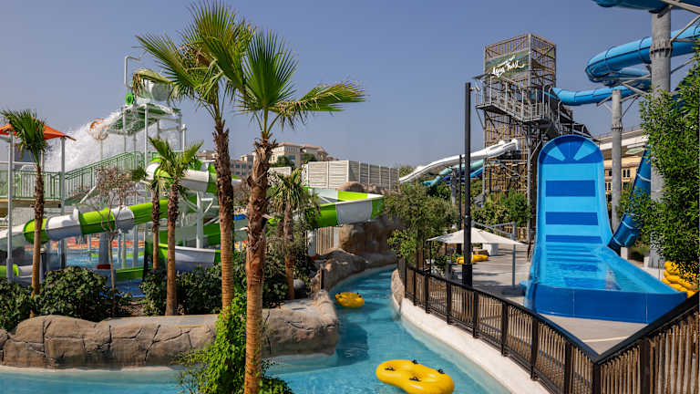 Das Grand Hyatt Dubai beherbergt den Grand Hyatt Dubai Waterpark, einen 20.000 Quadratmeter großen Boutique-Wasserpark mit 16 besonderen Attraktionen wie einem Wellenbad mit Sandstrand, einem sich schlängelnden Strömungskanal, der ersten dreifachen FlowRider-Wellenmaschine der Region und zwei Rutschentürmen, darunter eine Boomerango-Rutsche. Mit Blick auf den Wasserpark liegt La Palma, ein lebhaftes Restaurant mit herrlichem Blick auf die Skyline von Dubai. Darüber hinaus verfügt das Hotel über zwei temperierte Außenpools und einen 20 Meter langen temperierten Innenpool. Zeitplan: • Wasserpark: 10:00 - 18:00 Uhr • Außenpools: 9:00 - 20:00 Uhr • Hallenbad & Whirlpool: 24 Stunden geöffnet für interne erwachsene Gäste. Kinder sind ausschließlich von 9:00 bis 18:00 Uhr erlaubt. • Preisgekröntes Ahasees Spa & Club: 7:00 - 23:00 Uhr