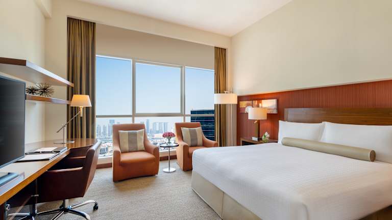 Die Zimmer im Grand Millennium Al Wahda bieten neben modernem Komfort auch elegante Einrichtungselemente. Zu den Standardannehmlichkeiten gehören individuell regulierbare Klimaanlage, Safe, Minibar, kostenloses WLAN, Flatscreen-TV und Badezimmer mit Dusche und Badewanne.
