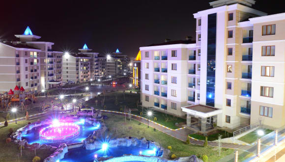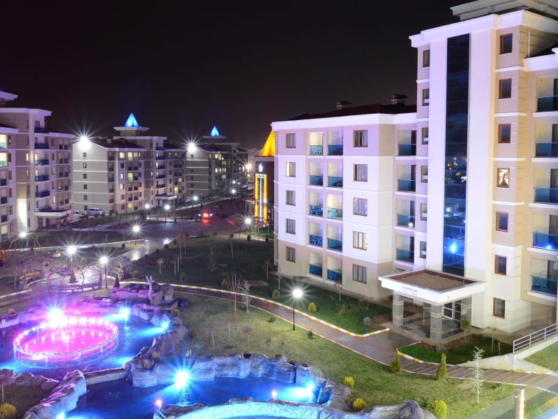 Das Grand Ozgul Thermal Holiday Village bietet Ihnen einen entspannten Aufenthalt in der Nähe von Afyon. Hier können Sie in den heilenden Thermalbädern und heißen Quellen Kuren und Anwendungen genießen. Das Hotel verfügt über verschiedene Pools, einen Fitnessraum und einen großzügigen Wellnessbereich. Die Zimmer sind komfortabel eingerichtet und verfügen über eine voll ausgestattete Küchenzeile. Starten Sie Ihren Tag mit einem reichhaltigen Frühstück und genießen Sie türkische und internationale Gerichte im À-la-carte-Restaurant. Entspannen Sie im Türkischen Bad, der Sauna oder unternehmen Sie eine Fahrradtour. Kostenlose Parkplätze und ein 24-Stunden-Rezeptionsservice stehen Ihnen zur Verfügung.