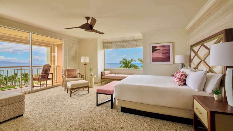 Die geräumigen Zimmer und Suiten im Grand Wailea Resort Hotel & Spa bieten einen herrlichen Ausblick, moderne Annehmlichkeiten und kostenfreies WLAN. Jedes Zimmer verfügt über eine eigene möblierte Terrasse, einen Flachbild-TV und Premium-Daunendecken. Das Badezimmer ist mit luxuriösen Annehmlichkeiten ausgestattet, darunter eine tiefe Badewanne, flauschige Bademäntel und Hausschuhe sowie Designer-Pflegeprodukte.