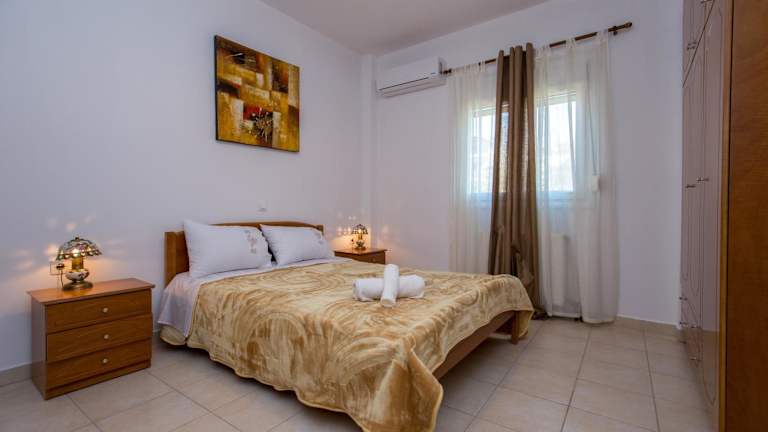 Die klimatisierte Ferienwohnung verfügt über zwei Schlafzimmer, ein Wohnzimmer und eine voll ausgestattete Küche. Diese beinhaltet einen Kühlschrank und eine Kaffeemaschine. Zu den weiteren Annehmlichkeiten gehört ein Badezimmer mit Dusche und Haartrockner sowie ein Flachbild-TV mit Satellitenkanälen.
