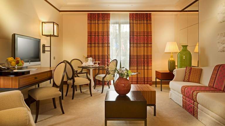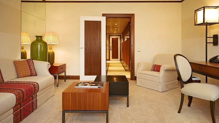 Das Grande Real Villa Itália Hotel & Spa in Cascais bietet eine vielfältige Auswahl an luxuriösen Unterkünften, die klassische Eleganz mit modernem Komfort verbinden. Jedes Zimmer und jede Suite ist sorgfältig gestaltet, um Gästen einen unvergesslichen Aufenthalt zu bereiten. ️ Zimmer Deluxe Zimmer mit Gartenblick: Diese 36–38 m² großen Zimmer bieten elegantes Dekor, Tageslicht und Blick auf die Hotelgärten. Sie sind mit LCD-Fernsehern, kostenlosem WLAN und Badezimmern mit Badewanne und Dusche ausgestattet. Grand Deluxe Zimmer mit Gartenblick: Geräumige Zimmer mit 40–46 m², ideal für längere Aufenthalte. Sie bieten Gartenblick, Schreibtische und luxuriöse Badezimmer. Seaview Retreat Zimmer: Diese Zimmer bieten großzügigen Platz und Balkone mit Stühlen, ideal zum Genießen des Meerblicks. Die Einrichtung ist von ruhigen Blautönen inspiriert. Seascape Zimmer: Mit herrlichem Meerblick und einer beruhigenden Einrichtung in Blautönen bieten diese Zimmer eine ruhige Atmosphäre. The Prestige Collection Hotels ️ Suiten Suiten: Das Hotel bietet 18 Suiten mit separatem Schlaf- und Wohnbereich. Sie sind in warmen Ocker- und Bordeauxtönen gehalten, bieten Blick auf die Gärten und verfügen über LCD-Fernseher, kostenloses WLAN und Badezimmer mit Badewanne und Dusche. Premium Suite mit Meerblick: Die 69 m² große Suite verfügt über ein Schlafzimmer und ein Wohnzimmer und ist in warmen Farbtönen gehalten. Sie bietet einen Balkon mit herrlichem Meerblick, LCD-Fernseher, kostenloses WLAN und ein Badezimmer mit Badewanne und Dusche. Master Suite mit Meerblick: Diese 167 m² große Suite ist im Stil der 60er-Jahre in Blau- und Weißtönen gehalten. Es verfügt über ein Zweibettzimmer mit Meerblick, ein Wohnzimmer, ein Esszimmer, eine Küchenzeile und einen Ruhebereich mit Whirlpool. Penthouses Majestic Penthouse: Das luxuriöseste Penthouse in Cascais bietet ein Doppelzimmer, ein Zweibettzimmer, geräumige Wohn- und Essbereiche, einen Whirlpool mit direktem Meerblick und eine private Terrasse mit kleinem Pool. Royal Penthouse: Eine außergewöhnliche Maisonette mit Meerblick, einem Doppelzimmer, zwei Badezimmern, einem großen Wohnzimmer mit Balkon und Meerblick, einem Esszimmer und einer Küchenzeile.
