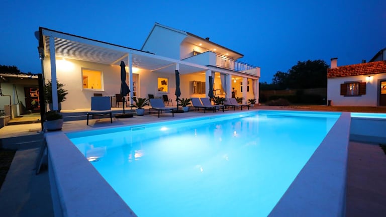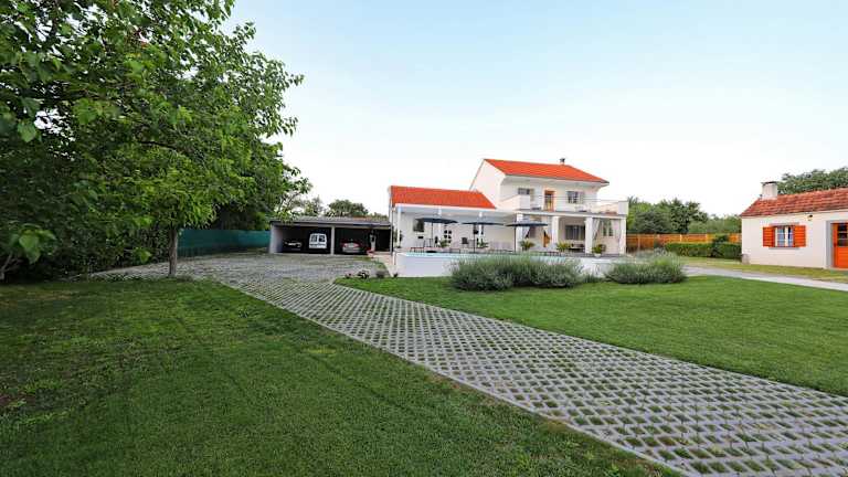 Verbringen Sie einen erholsamen Aufenthalt im Grandma Mary's Home in Polača, nur 12 km vom Yachthafen Kornati entfernt. Das Ferienhaus bietet einen saisonalen Außenpool, eine Terrasse und eine Gemeinschaftsküche. Genießen Sie den eigenen Pool, den Garten und Grillmöglichkeiten sowie kostenfreies WLAN und Privatparkplätze. Das klimatisierte Ferienhaus verfügt über 4 Schlafzimmer, ein Wohnzimmer, eine voll ausgestattete Küche und 2 Badezimmer. Entspannen Sie in der Sauna und erkunden Sie die nahe gelegenen Sehenswürdigkeiten wie das Biograd Heritage Museum und den Fun Park Mirnovec. Der Flughafen Zadar ist nur 18 km entfernt.