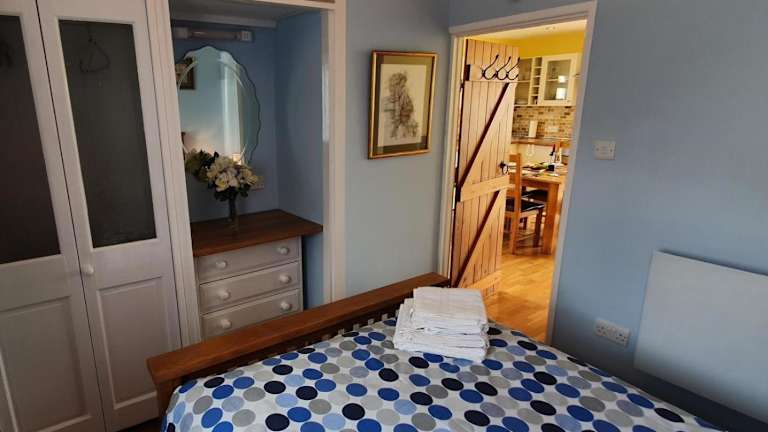 Das Ferienhaus beinhaltet ein Schlafzimmer und ist ausgestattet mit einer Küche, die einen Kühlschrank und einen Ofen enthält. Es gibt ein Badezimmer mit Dusche, Haartrockner und Waschmaschine. Handtücher sowie Bettwäsche werden zur Verfügung gestellt.