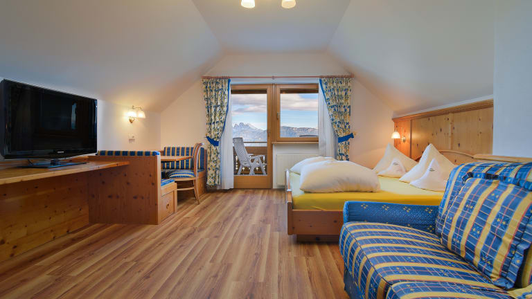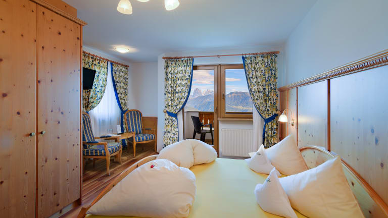Erleben Sie wahrhaft alpinen Urlaubsgenuss in ruhiger Südhanglage mit einmaligem Rundblick auf die gegenüberliegenden Dolomiten, auf die Sie direkt von Ihrem Zimmer aus blicken. Im Granpanorama Wellness Hotel Sambergerhof in Villanders ist Ihnen nicht nur ein atemberaubendes Panorama sicher. Hier kommen Sie auch in den Genuss echter Urlaubsruhe, die Sie nach Herzenslust aktiv gestalten oder einfach zum Entspannen nutzen können.