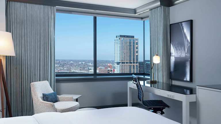 Die Zimmer im Minneapolis Loews Hotel sind elegant gestaltet und bieten kostenfreies WLAN. Sie verfügen über einen Flachbild-TV an der Wand und eine gut ausgestattete Minibar. An den Betten finden Sie Steckdosen und Leselampen. Die Badezimmer sind mit Kalksteinoberflächen und stilvollen Glaswaschbecken ausgestattet.