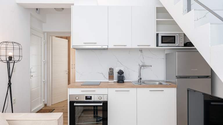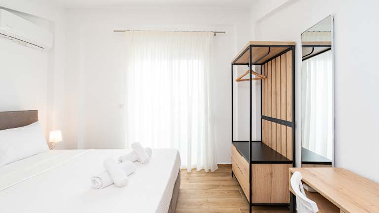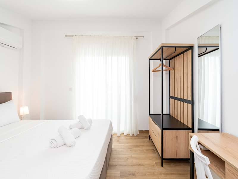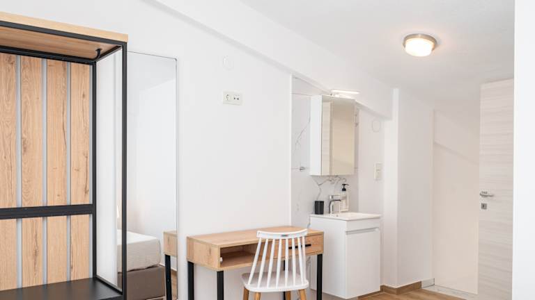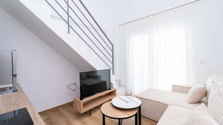 Ein voll ausgestattetes Schlafzimmer-Apartment, entweder im Erdgeschoss mit kleiner Terrasse oder im ersten Stock mit Balkon. Beide Apartmenttypen bieten Zugang zu einem Gemeinschaftspool. Unsere stilvollen Lofts mit zwei Schlafzimmern sind ideal für Familien, Freunde oder Paare, die mehr Platz und Komfort suchen. Die Lofts erstrecken sich über zwei Etagen und bieten zwei einladende Schlafbereiche: ein separates Schlafzimmer mit Tür sowie ein gemütliches, offenes Schlafzimmer auf der Galerie im Obergeschoss mit Blick auf den Wohnbereich. Die Lofts sind komplett ausgestattet mit einem Wohnzimmer, einer Küchenzeile und einem separaten Schlafzimmer im Erdgeschoss sowie einem weiteren Schlafzimmer im Obergeschoss mit Zugang zum Wohnzimmer. Zur Anlage gehört ein Gemeinschaftspool.