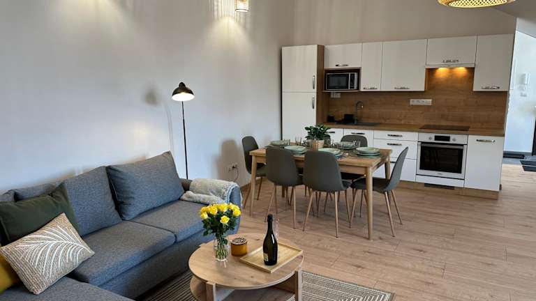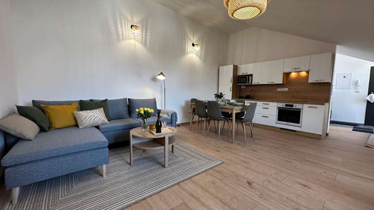 Das GREEN Apartment - City Centre - Main Square in Liptovský Mikuláš bietet komfortable Unterkünfte mit herrlichem Bergblick und kostenfreiem WLAN. Die Nähe zum Aquapark Tatralandia und zur Eishöhle Demanovská macht es zu einem idealen Ausgangspunkt für Aktivitäten in der Umgebung. Mit einer voll ausgestatteten Küche und einem gemütlichen Wohnzimmer ist das Apartment perfekt für einen erholsamen Aufenthalt.