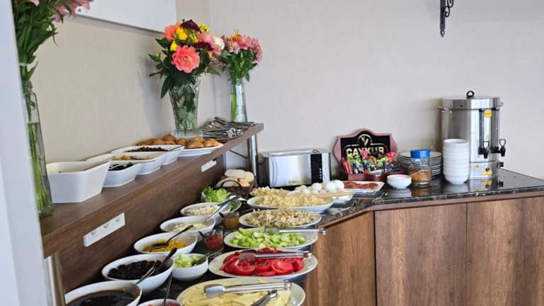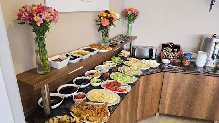 Im Hotel steht Ihnen eine Gemeinschaftsküche zur Verfügung, in der Sie Ihre eigenen Mahlzeiten zubereiten können. Darüber hinaus gibt es in der Nähe des Hotels verschiedene Restaurants, in denen Sie lokale und internationale Küche genießen können.