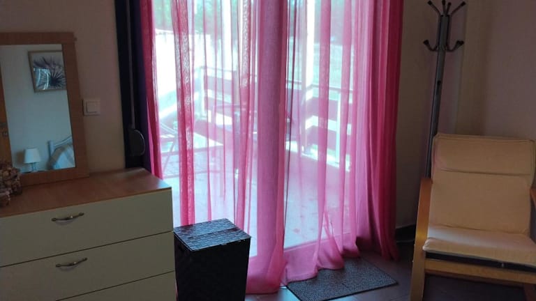 Die Ferienwohnung ist klimatisiert und besteht aus einem Schlafzimmer, einem Wohnzimmer, einer voll ausgestatteten Küche, einem Kühlschrank, einer Kaffeemaschine und einem Badezimmer mit Dusche und kostenlosen Pflegeprodukten. Handtücher und Bettwäsche werden ebenfalls bereitgestellt. Zudem ist ein Balkon vorhanden, von dem aus Gäste den Gartenblick genießen können.