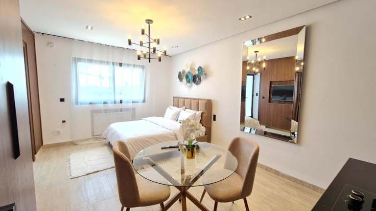 Green Suites Tunis bietet klimatisierte Übernachtungsmöglichkeiten mit kostenlosem WLAN. Die Unterkünfte sind mit einer Terrasse ausgestattet, von der aus man einen Gartenblick hat.