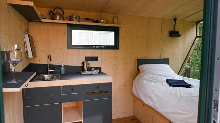 Das Green Tiny Village Harz - Sleep Space 33 bietet Übernachtungsmöglichkeiten in einem Ferienhaus mit 1 Schlafzimmer. Die Unterkunft verfügt über eine Sauna und ermöglicht den Zugang zu einem Garten. Zudem gibt es einen Kinderspielplatz und eine Terrasse mit Bergblick.
