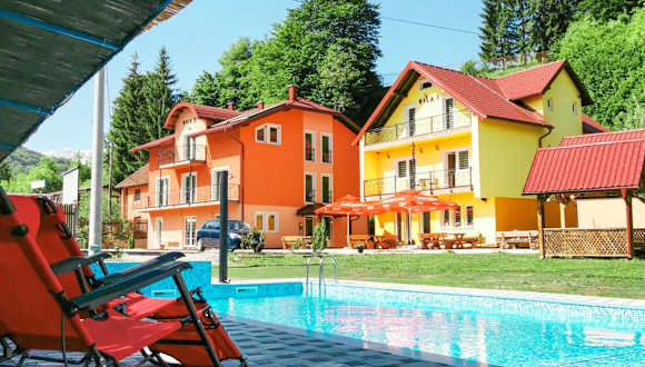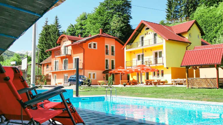 Erleben Sie einen erholsamen Aufenthalt in den Green Villas Tjentiste in Tjentište. Mit kostenfreiem WLAN, einem saisonalen Außenpool und einem Wasserpark bietet die Unterkunft alles, was Sie für einen entspannten Urlaub benötigen. Genießen Sie das tägliche Frühstück mit kontinentalen, vegetarischen oder veganen Speisen und entspannen Sie in Ihrem eigenen Apartment mit Terrasse. Das Green Villas Tjentiste bietet außerdem ein Businesscenter, kostenfreie Privatparkplätze und verschiedene Freizeitaktivitäten wie Tischtennis und Radfahren. Der internationale Flughafen Sarajevo ist nur 89 km entfernt.