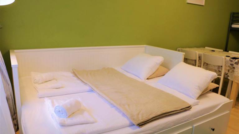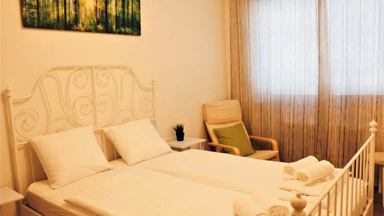Die Ferienwohnung verfügt über ein Schlafzimmer, ein Wohnzimmer sowie ein Badezimmer mit Dusche. Zur Ausstattung gehören ein Flachbild-TV, eine gut ausgestattete Küche mit Kühlschrank und Geschirrspüler sowie die Bereitstellung von Handtüchern und Bettwäsche.